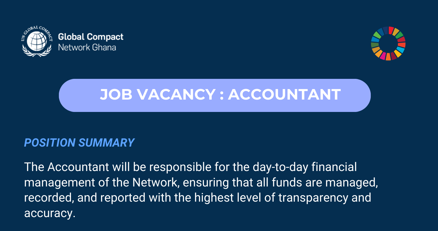 To apply, send a copy of your CV and a cover letter to info@unglobalcompactghana.com with the subject: APPLICATION FOR THE ACCOUNTANT POSITION by 31st March, 2026.